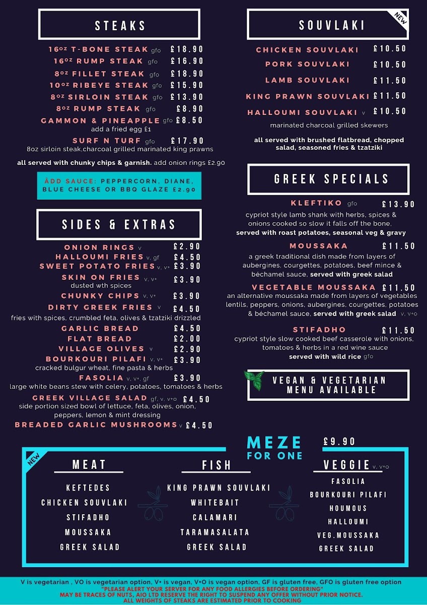 “ The moment we stepped through the door, we were greeted with smiles and outstanding customer service. The menus looked great and the drinks were delivered really quickly. Food was ordered,cooked and delivered quickly too. It was absolutely delicious! The steak was cooked to perfection with exchanges catered for with no problem and the chicken souvlaki melted in your mouth...so many chips! We come a couple of times a year to the theatre and never need to eat anywhere different again! They also added a 10% discount to the bill as we were going to the theatre afterwards...something they have always offered! This completely unassuming restaurant is a hidden gem in Bristol that I am so glad we found. Can't wait to return ”